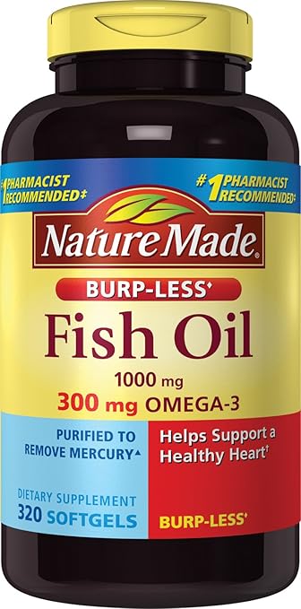 [01/03/2018] Nature Made Burpless Fish Oil 1000 mg w. Omega-3 300 mg 保健食品,320顆 ,Nature Made Burpless Fish Oil 1000 mg w. Omega-3 300 mg Softgels Mega Size 320 Ct,目前特價$13.29 USD。使用Subscribe & Save還有額外折扣。Prime境內免運費 (學生可以免費試用Prime)。哪裡買:amazon 。