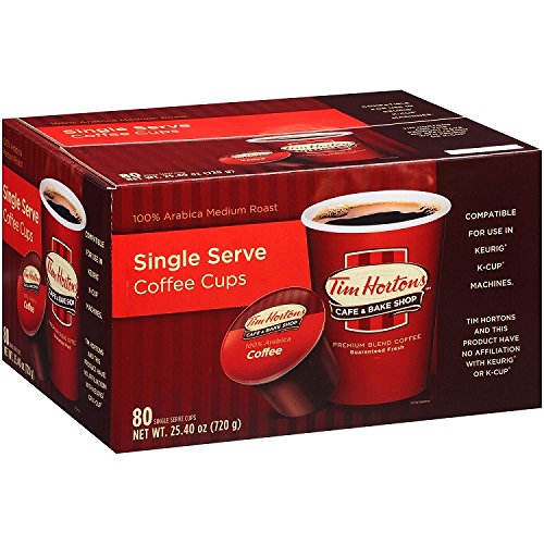 [12/03/2017] Tim Horton’s K-cup 咖啡膠囊,80顆,Tim Horton’s Single Serve Coffee Cups, Premium Roast, 80 Count,目前特價$34.98,使用Subscribe & Save訂購,可以打額外七五折,再打額外九折,等於只要$23.99 USD。 Prime境內免運費。哪裡買: amazon。