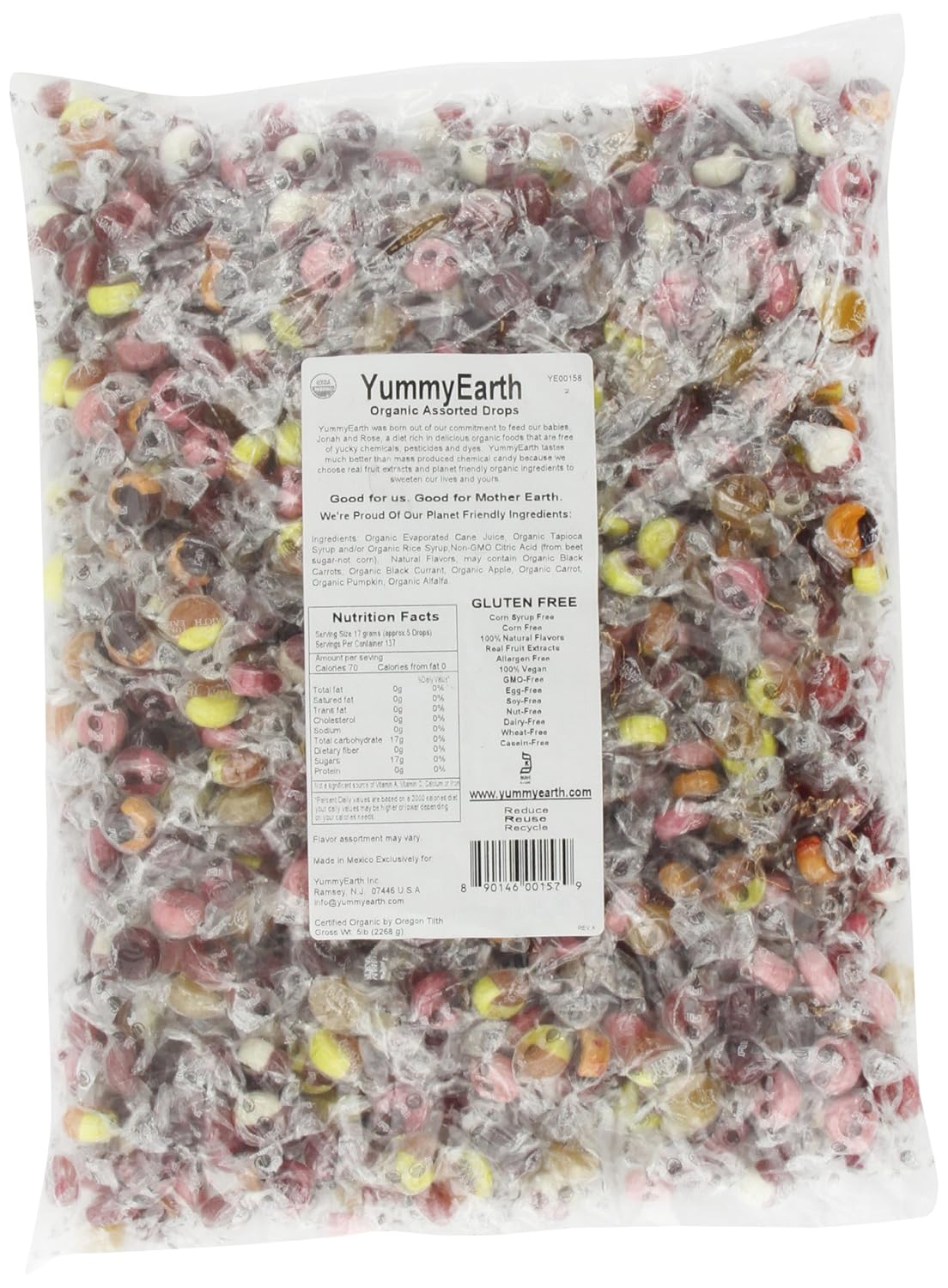 [03/212015] 多款YumEarth 有機糖果有額外八五折 Coupon 可以使用,上圖,有機水果糖,YumEarth Organic Candy Drops, 5 Pound Bag,5磅,無麩質蛋白(Gluten Free)。定價$33.68,如果選擇 Subscribe and Save 最多可以再八五折折扣,相當於七折。全部折扣後只要 $33.68 – $5.05 (15% off Coupon) – $5.05 (15% off Subscribe & Save) = $23.58 USD。免運費。哪裡買:amazon。更多選擇請看這裡:YumEarth Organic Extra 15% off