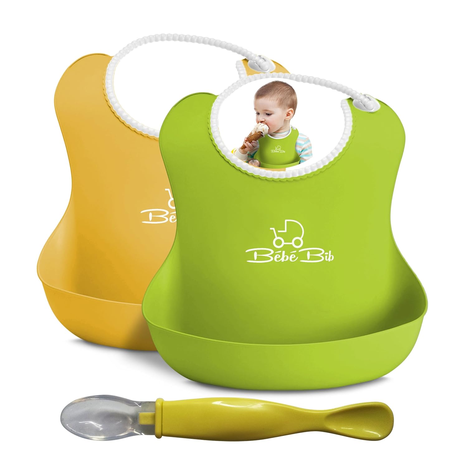 [01/20/2015] Bebe Bib幼兒圍兜目前55折特價 ,Premium Reuseable Silicone Soft Bibs ✮ Color Options ✮ Best Baby / Toddler Bib for Home and Travel ✮ BONUS Silicone Spoon & EBook ✮ Neutral White Neckline ✮ Ergonomically Designed For Comfort and Practicality ✮ Blue & Green,一組兩種顏色送一個湯匙 ,有多款顏色組合可以選擇,定價$28,amazon 評價很好,今天特價只要$14.97 USD。Prime境內免運費(媽咪可免費使用Prime 30 天)。哪裡買: amazon。