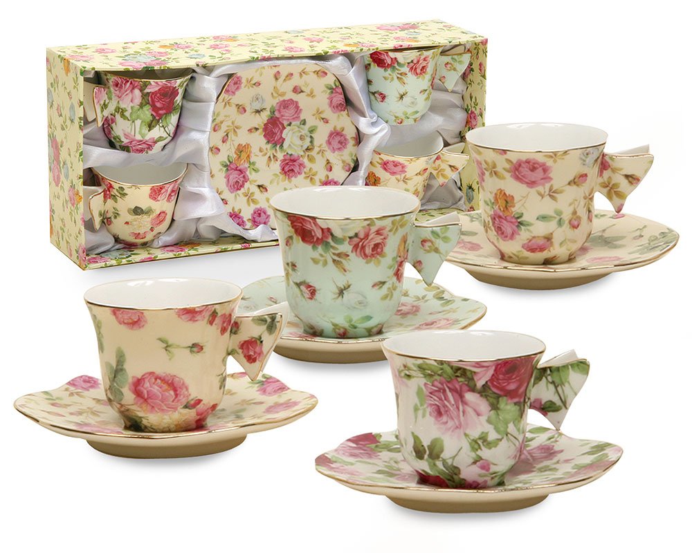 [03/17/2015] 漂亮的Espressol咖啡杯組,Gracie China Rose Chintz 2-Ounce Porcelain Espresso Cup and Saucer with Butterfly Handles, Set of 4,共四組咖啡杯。特價 $28 USD。Prime免運費。哪裡買:amazon。