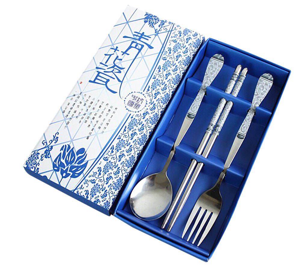 [03/21/2015] 另一組青花瓷筷子+湯匙+叉子組,Metal Stainless Steel Chopsticks Spoon and Fork Set Chinese Style Blue and White Porcelain Design with Stylus,漂亮的餐具用起來心情特別好,請外國朋友到家裡吃飯也會很驚艷,目前價格 $7.99 USD。免運費。哪裡買: amazon。