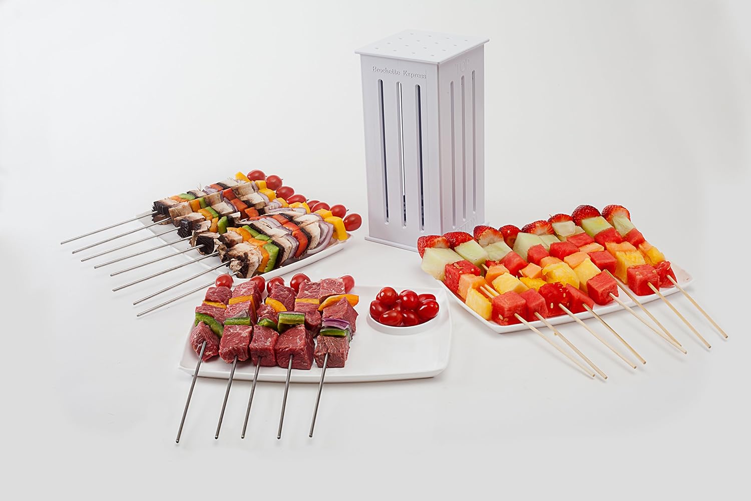 [03/21/2015] 天氣回暖,有讀者準備開始後院BBQ享受美好的日照了嗎?這個好用的BBQ道具不可以錯過,Brochette Express with 32 bamboo skewers,使用非常簡單,只要把想吃的食物蔬果魚肉一層一層堆疊在盒子內,蓋上蓋子,插上竹籤,兩側各切三刀,就可以輕輕鬆鬆串好16個專業的烤肉串,真是BBQ不可少的好工具啊,訂價$29.99USD,Prime免運費。哪裡買:amazon。