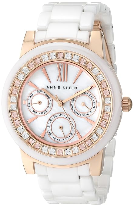 [04/17/2015] 或是 Anne Klein AK/1682RGWT Swarovski 系列水晶女表,Anne Klein Women’s AK/1682RGWT Swarovski Crystal-Accented White Ceramic and Rose Gold-Tone Watch,全新,定價$99,目前特價$46.99 USD。境內免運費。哪裡買: amazon。