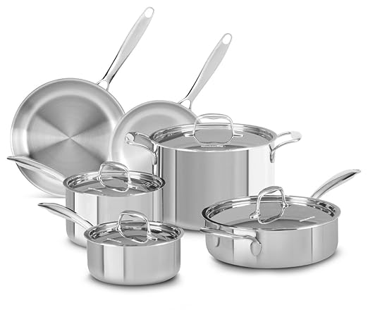 或是 KitchenAid KCTS10SLST Tri-Ply 系列不銹鋼廚具,一組十件,KitchenAid KCTS10SLST Tri-Ply Stainless Steel 10-Piece Cookware Set – Stainless Steel,目前購物車特價$319.99 USD。Prime境內免運費。哪裡買: amazon。