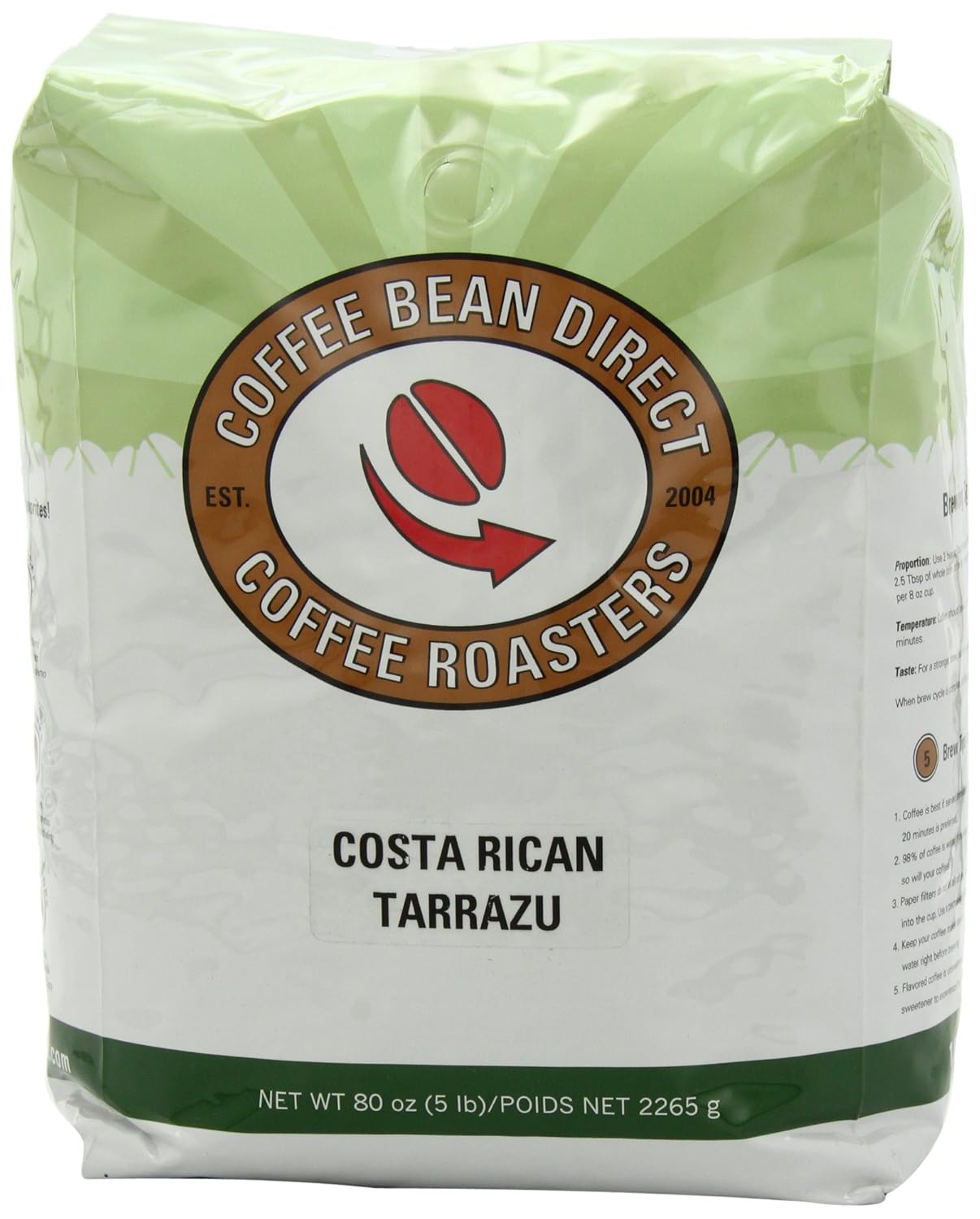 [05/05/2015] 多款Coffee Bean Direct 大包裝咖啡豆有額外$5USD 折價券可以使用,上圖,哥斯大黎加咖啡豆,coiffee Bean Direct Costa Rican Tarrazu, Whole Bean Coffee, 5-Pound Bag,五磅包裝,定價$41.49,如果選擇 Subscribe and Save 最多可以再八五折折扣,全部折扣後只要 $41.49 – $5 ($5 off Coupon) – $6.22 (15% off Subscribe & Save) = $30.27 USD。平均一磅只要$6 USD。免運費。哪裡買:amazon。