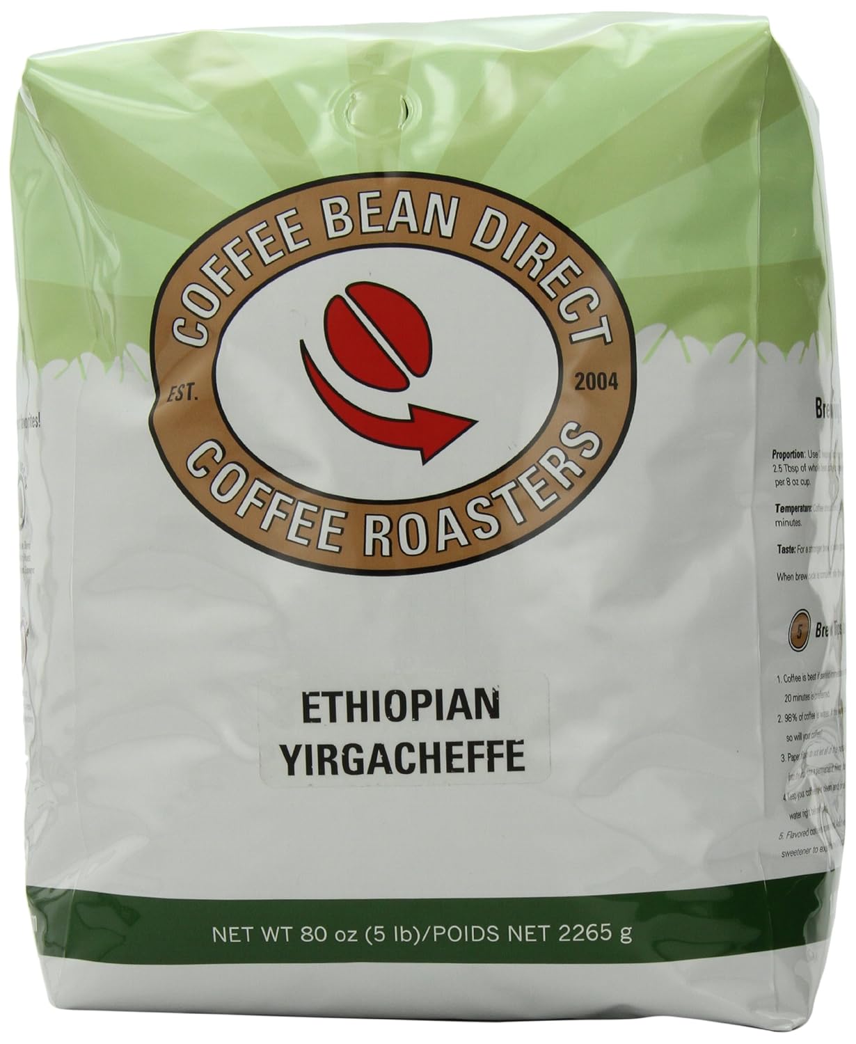[05/05/2015] 多款Coffee Bean Direct 大包裝咖啡豆有額外$5USD 折價券可以使用,上圖,伊索比亞咖啡豆,Coffee Bean Direct Ethiopian Yirgacheffe, Whole Bean Coffee, 5-Pound Bag,五磅包裝,定價$42.41,如果選擇 Subscribe and Save 最多可以再八五折折扣,全部折扣後只要 $42.41 – $5 ($5 off Coupon) – $6.36 (15% off Subscribe & Save) = $31.07 USD。平均一磅只要$6.2 USD。免運費。哪裡買:amazon。