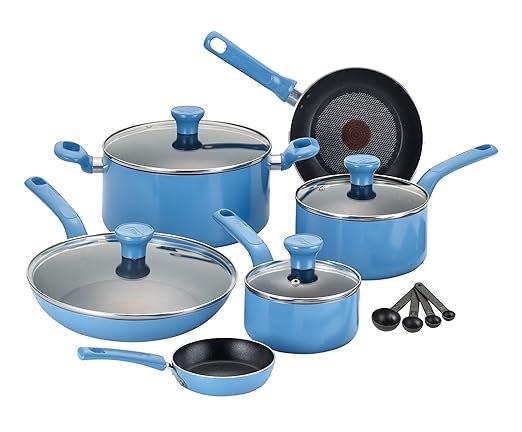 [09/09/2015] T-fal C969SE Excite 系列不沾鍋廚具組,T-fal C969SE Excite Nonstick Thermo-Spot Dishwasher Safe Oven Safe PFOA Free Cookware Set, 14-Piece, Blue, 共14件,全新, 特價只要$54.99 USD。 境內免運費。哪裡買: amazon。
