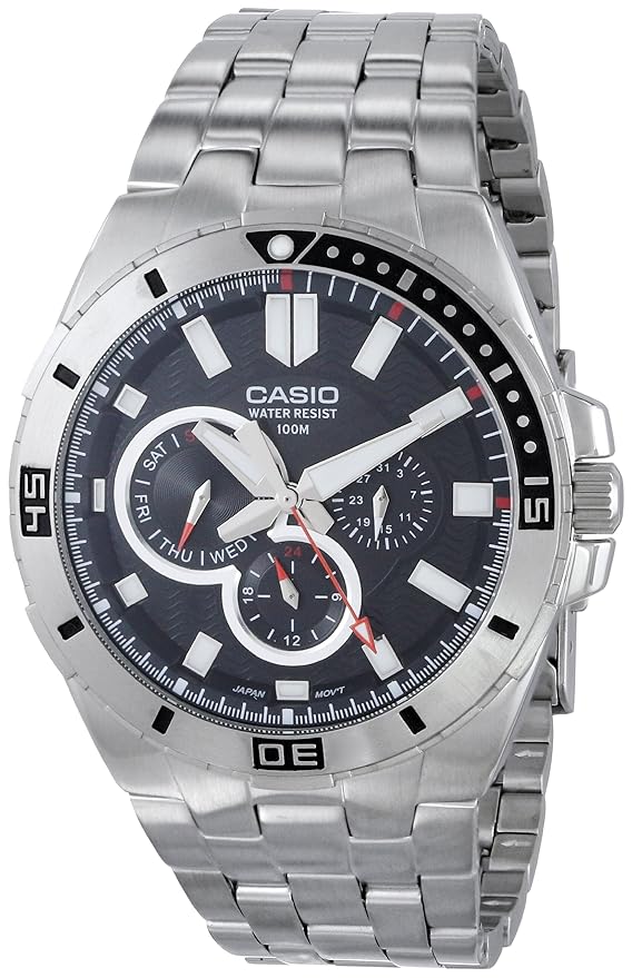 [09/20/2015] Casio MTD-1060D-1AVDF 不鏽鋼潛水表,Casio Men’s MTD-1060D-1AVDF Stainless Steel Dive Watch,不鏽鋼表身,石英錶蕊,防水100公尺,定價$110,目前特價$56.11 USD。Prime境內免運費 (學生可以免費試用Prime)。哪裡買: amazon。