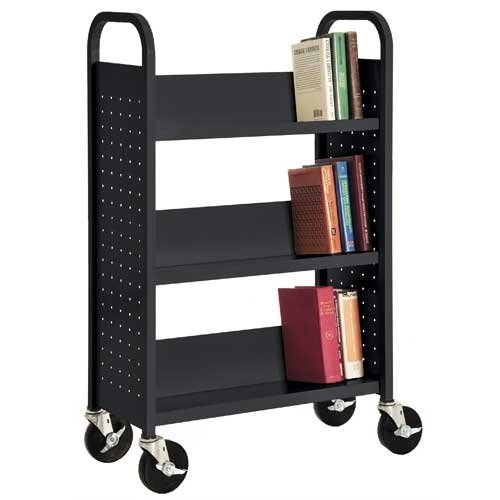 [02/05/2017] Sandusky SL327-09 附輪子的書架,Sandusky SL327-09 Black Heavy Duty Welded Steel Single Sided Sloped Shelf Book Truck, 3 Shelves, 200 lb. Capacity, 46″ Height x 28″ Width x 14″ Depth,非常堅固,定價$346.80,特價$141.44 USD。Prime境內免運費 (學生可以免費試用Prime)。哪裡買: amazon。