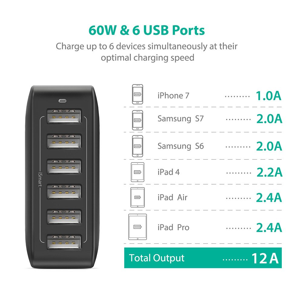 [03/30/2017] RAVPower 60W 12A 6孔USB充電插座,RAVPower 60W 12A 6-Port USB Charger Desktop Charger Charging Station with iSmart Technology (Black),目前特價只要$16.79 USD。境內免運費。哪裡買: Sunvalleytek via amazon。