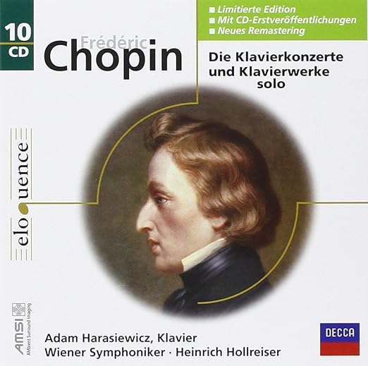[07/16/2017] 鋼琴詩人蕭邦的鋼琴名曲,共10張CD,Chopin: Die Klavierkonzerte und Klavierwerke solo,由1955年蕭邦鋼琴大賽冠軍得主 Adam Harasiewicz 演出,全新,特價$19.36 USD。境內免運費。哪裡買:amazon。