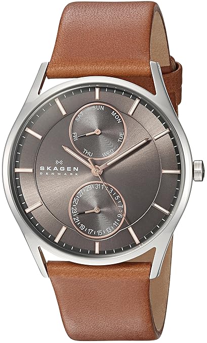 [10/11/2017] Skagen Saddle Leather 精美男表,Skagen Men’s Saddle Leather Multifunction Watch with Rose Goldtone Accents,皮質表帶,石英錶蕊,防水50公尺,目前特價只要$83.98 USD。Prime境內免運費 (學生可以免費試用Prime)。哪裡買:Woot via amazon。