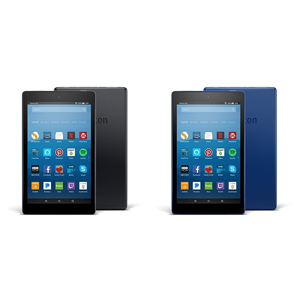 [12/27/2017] Fire HD 8 平板電腦,Fire HD 8 2-pack, 16GB – Includes Special Offers (Black/Marine Blue),一次買兩台,目前特價只要$99.99 USD。Prime境內免運費。哪裡買:amazon。