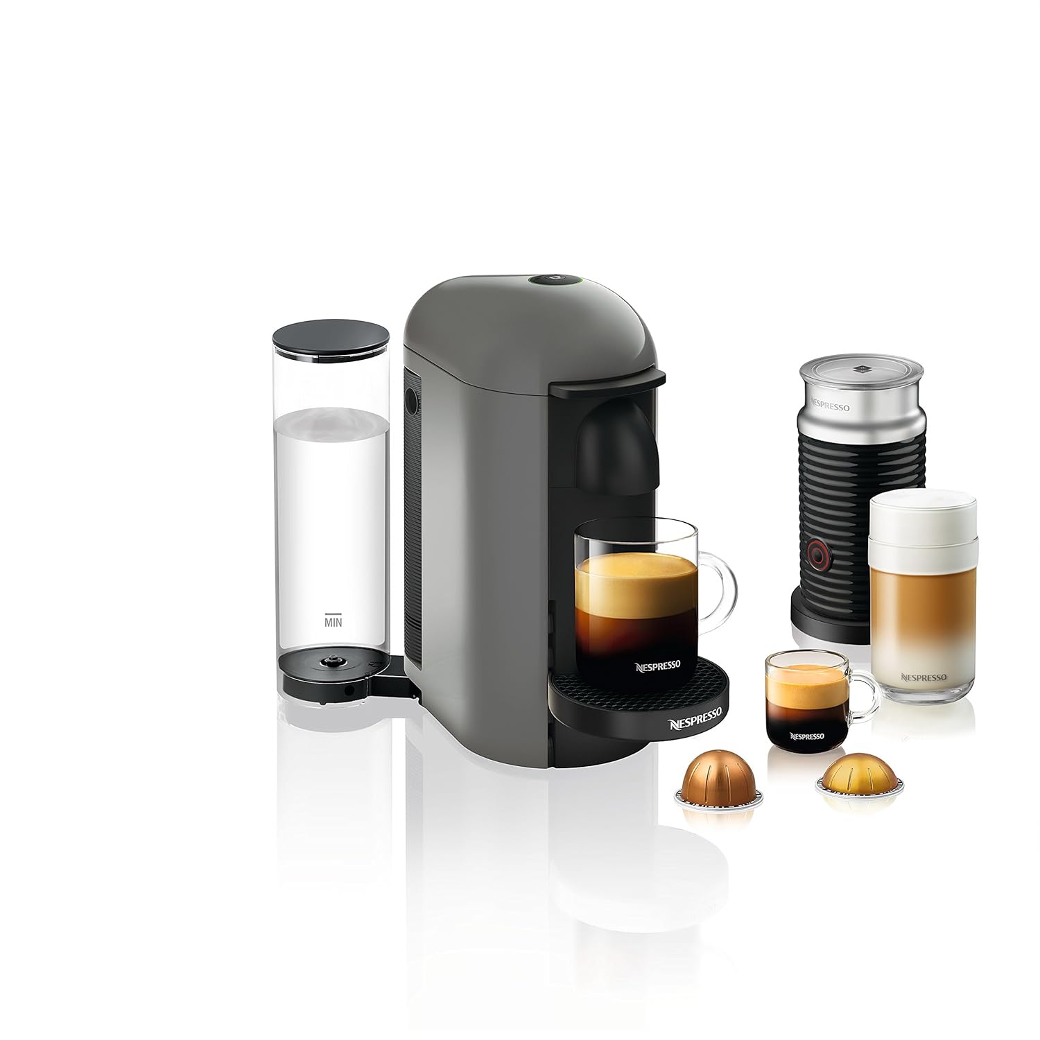 [12/25/2017] Nespresso VertuoPlus by Breville 膠囊式咖啡機,搭配 Aeroccino 奶泡機,Nespresso VertuoPlus Coffee and Espresso Maker by Breville with Aeroccino, Grey,目前特價$149.99 USD。 Prime境內免運費。哪裡買:amazon。