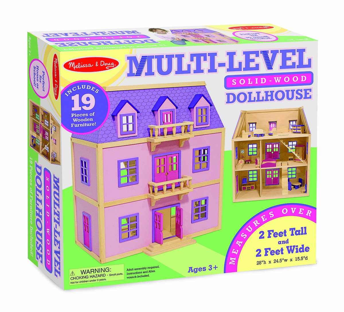 [06/28/2018] Melissa & Doug 木質三層娃娃屋,包括19件家具,Melissa & Doug Multi-Level Wooden Dollhouse With 19 pcs Furniture,目前特價只要$87.88 USD。境內免運費。哪裡買: amazon。