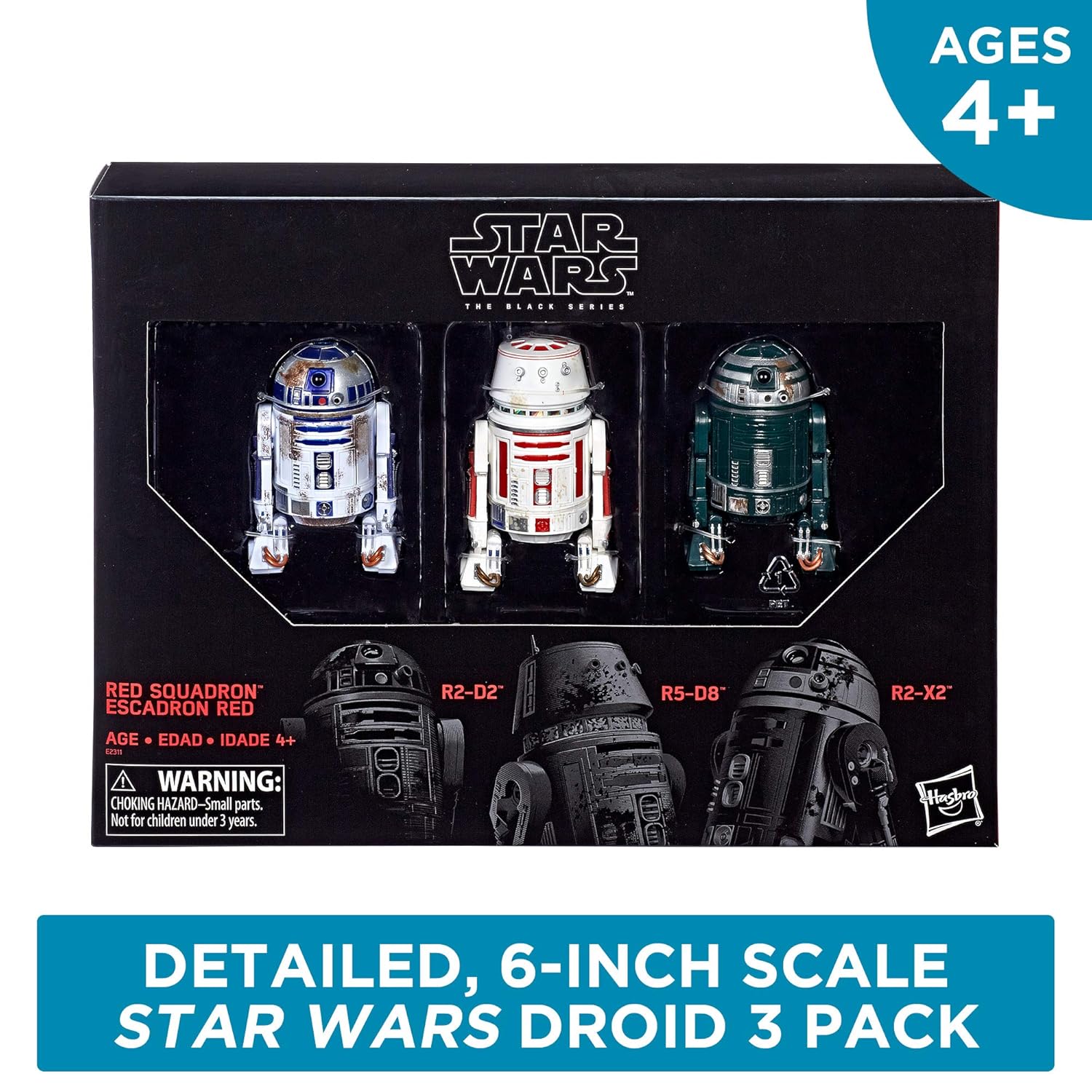 [12/31/2018] Star Wars 機器人玩偶珍藏版,6吋,共三款,Star Wars The Black Series Episode IV: A New Hope R2-D2 (Red Squadron) Droid Figure 3-Pack – Collectible/Fan 6-Inch-Scale Episode IV Droid Figures,目前特價只要$38.18 USD。境內免運費。哪裡買:amazon。