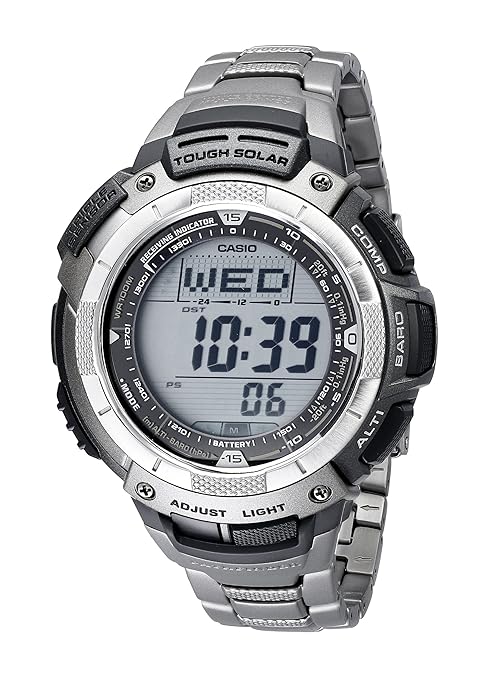 [06/13/2015] Casio PAW1100T-7V Pathfinder Triple-Sensor Titanium 系列男錶,Casio Men’s PAW1100T-7V Pathfinder Triple-Sensor Titanium Bracelet Watch,內建三個感應器(altimeter, barometer, thermometer),使用太陽能,石英表,防水100公尺,Titanium 錶身與表鍊,定價$350,今天特價$129.99 USD。Prime境內免運費。哪裡買:amazon。