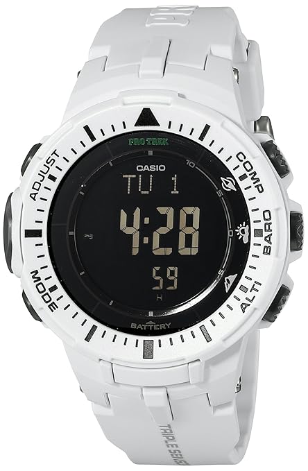 [04/04/2017] 特價只有今天。Casio ‘Pro Trek’ 系列不鏽鋼男用電子表 (PRG-300-7CR),Casio Men’s PRG-300-7CR Pro Trek Digital Watch with White Band,定價$250,目前特價$70.99 USD。 Prime境內免運費。哪裡買: amazon。