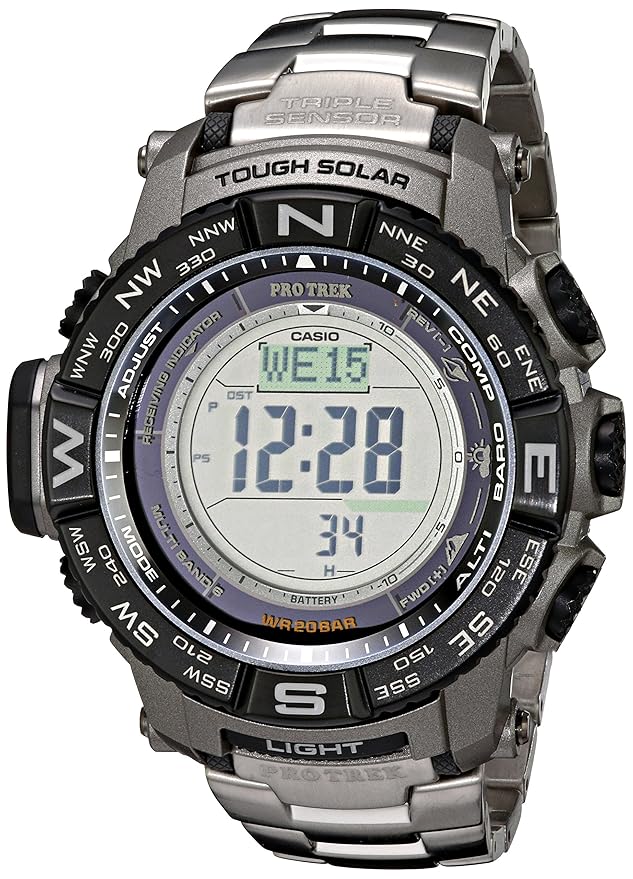 [12/17/2016] Casio PRW-3500T-7CR Pro Trek Tough Solar 系列男錶,Casio Men’s PRW-3500T-7CR Pro Trek Tough Solar Digital Sport Watch,內建三個感應器(altimeter, barometer, thermometer),使用太陽能,石英表,防水200公尺,Titanium 錶身,Titanium 表鍊,定價$450,今天特價$197.99 USD。Prime境內免運費。哪裡買:amazon。